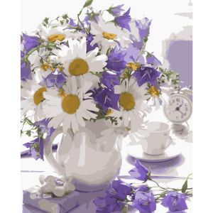 Картина за номерами Strateg Букет з ромашками на кольоровому фоні розміром 40х50 см (VA-2524)