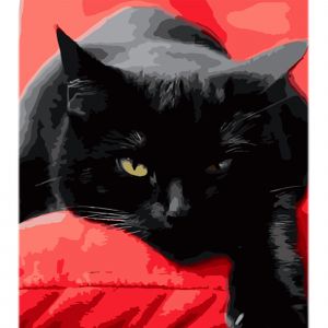 Картина за номерами Strateg Чорний котик на кольоровому фоні розміром 40х50 см (MZ004)