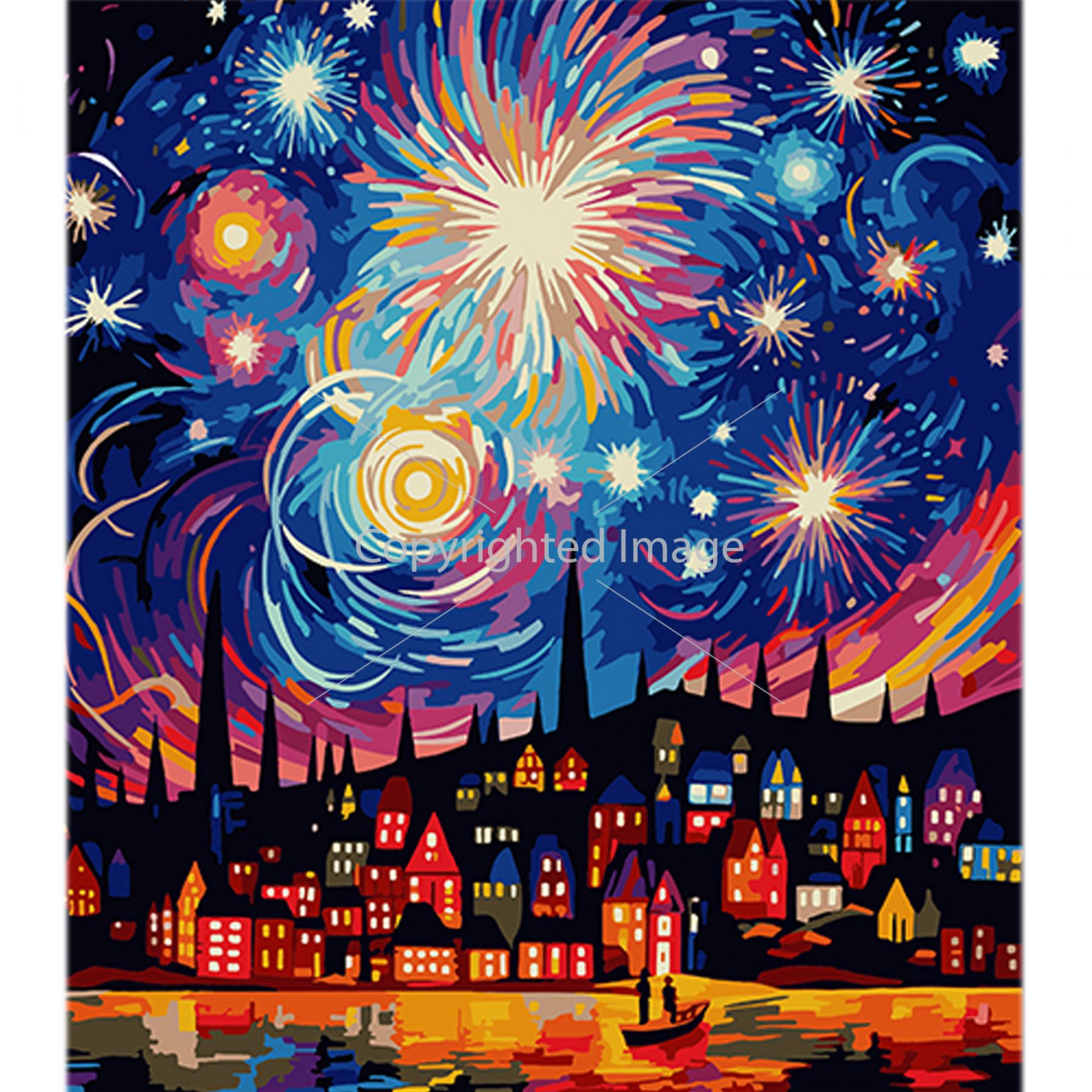 Картина за номерами Strateg Фейерверк в стилі імпресіонізму на чорному фоні розміром 40х50 см (AH1091)