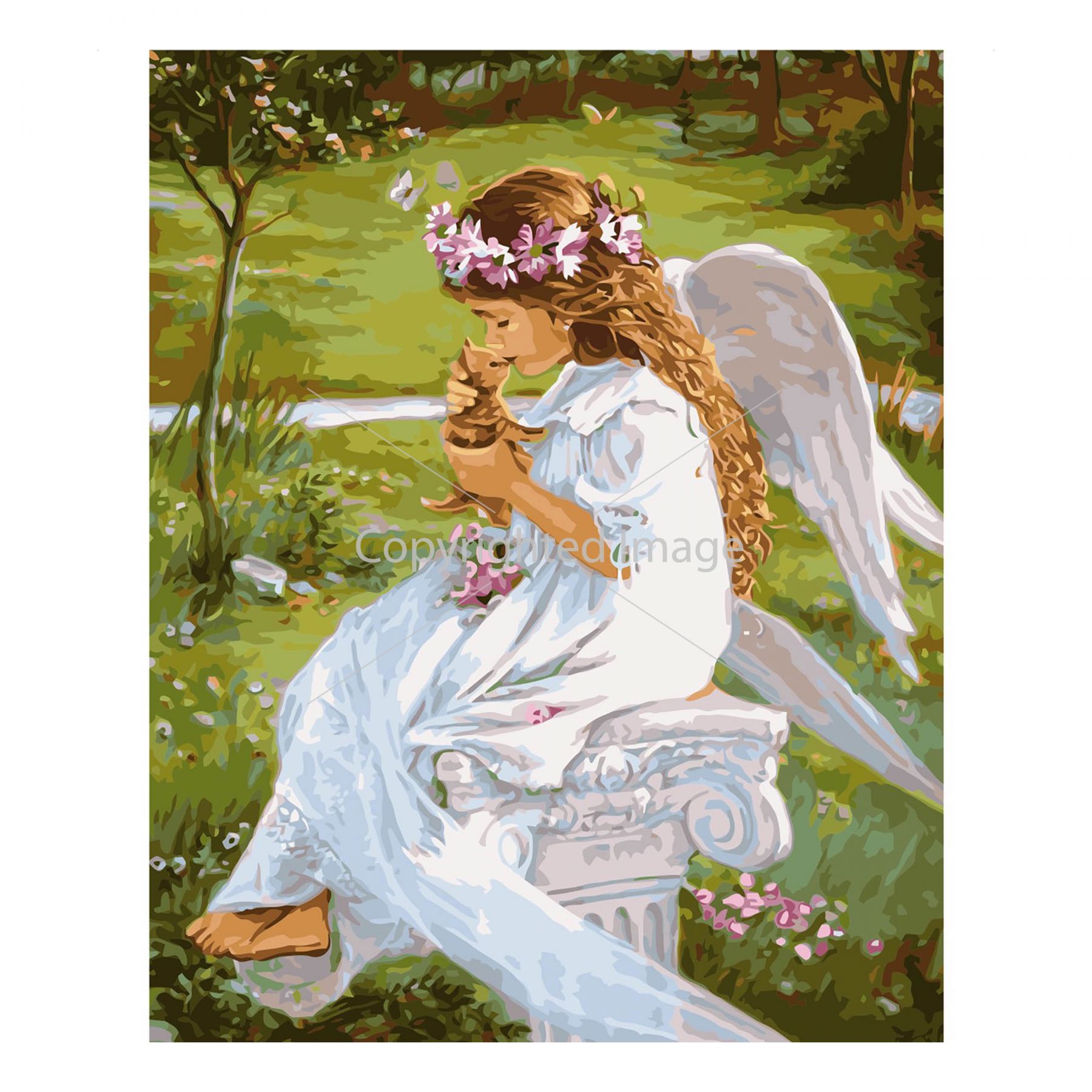 Картина за номерами Strateg Гармонія янгола з прородою на кольоровому фоні розміром 40х50 см (VA-2550)