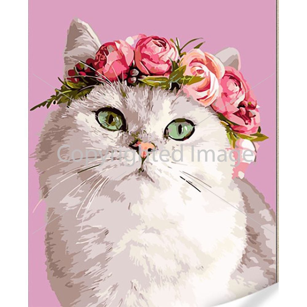 Картина за номерами Strateg Кішка з вінком із квітів на кольоровому фоні розміром 40х50 (GS1601)
