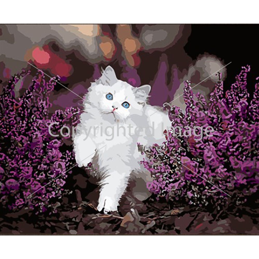 Картина за номерами Strateg Котик із блакитними очима на кольоровому фоні розміром 40х50 (GS1606)