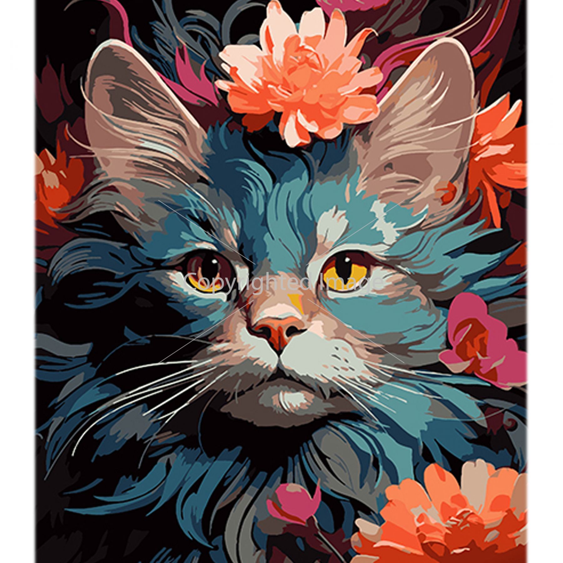 Картина за номерами Strateg Котяча квіткова грація на чорному фоні розміром 40х50 см (AH1105)