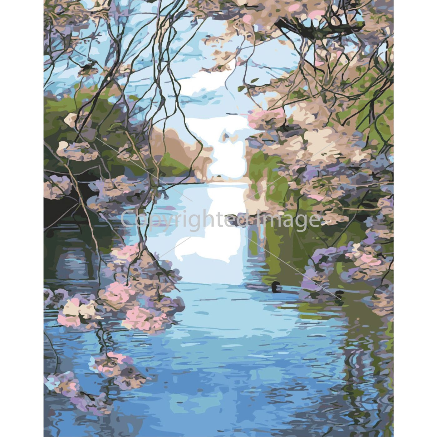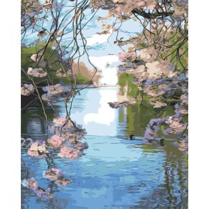 Картина за номерами Strateg Квітуча заводь на кольоровому фоні розміром 40х50 см (SY6419)