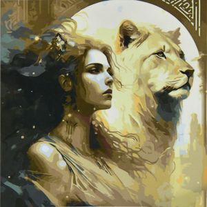 Картина за номерами Strateg Львиця з дівчиною розміром 50х50 см (AA013)