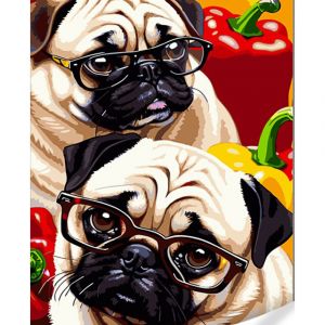Картина за номерами Strateg Мопси з перчинкою на кольоровому фоні розміром 40х50 (GS1624)