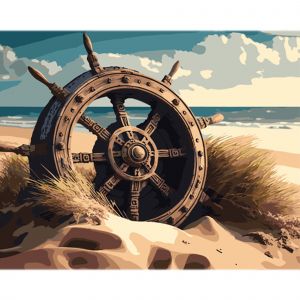 Картина за номерами Strateg Морський штурвал на пляжі на кольоровому фоні розміром 40х50 см (MZ070)