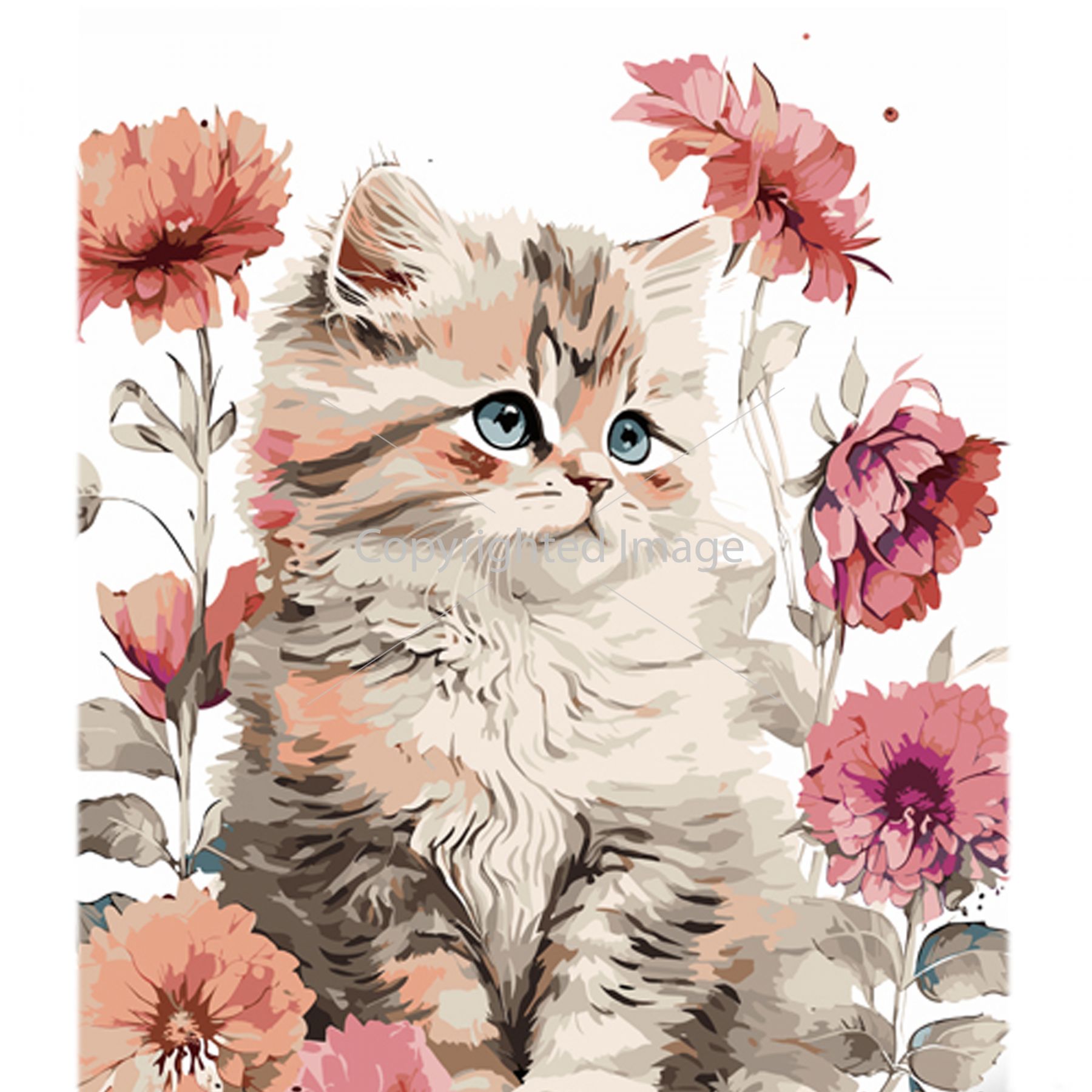 Картина за номерами Strateg Ніжні квіти і пухнастик на кольоровому фоні розміром 40х50 см (MZ071)