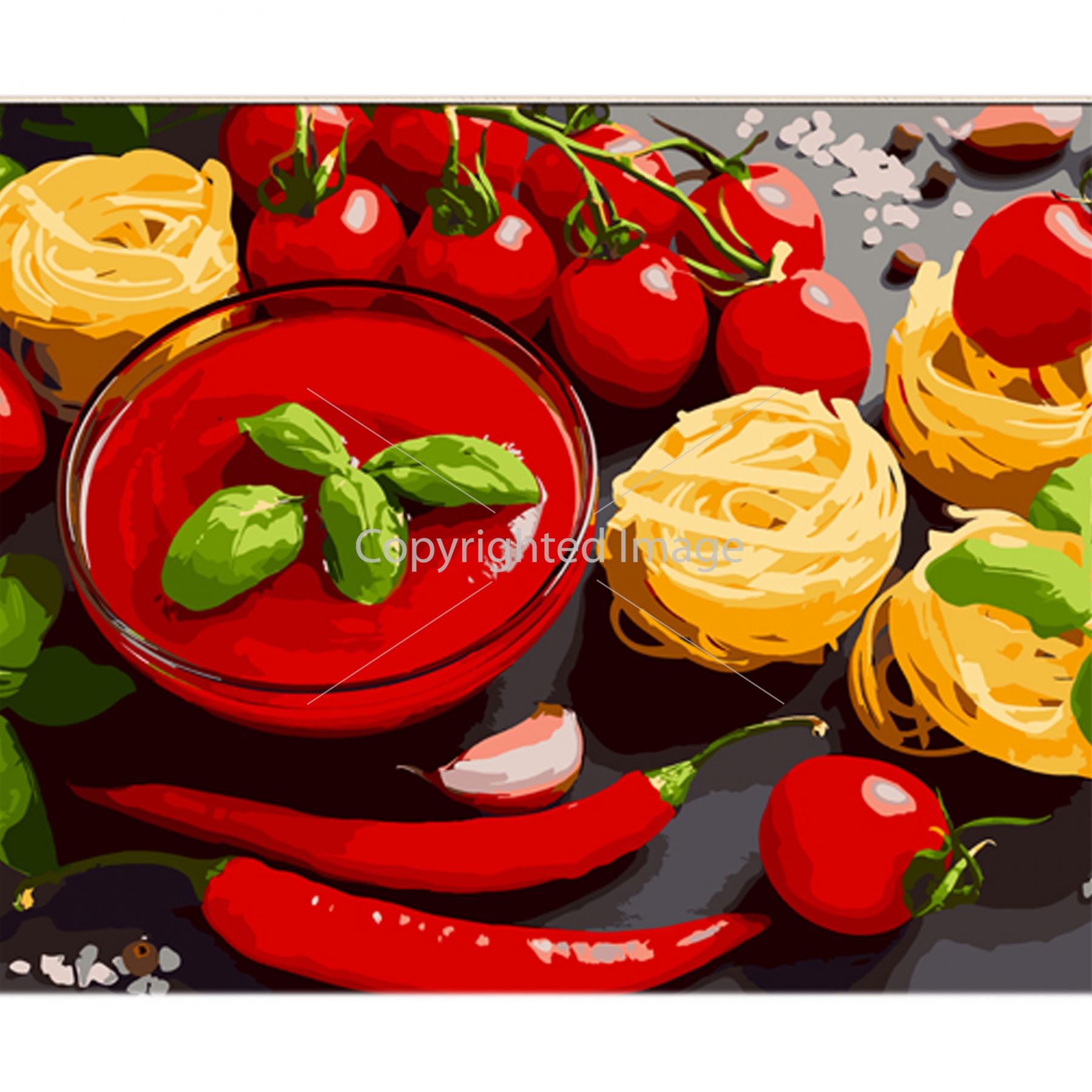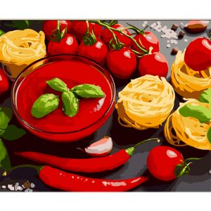 Картина за номерами Strateg Паста з чилі та томатами на кольоровому фоні розміром 40х50 см (MZ073)
