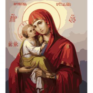 Картина за номерами Strateg Почаївська ікона на кольоровому фоні розміром 40х50 см (MZ039)