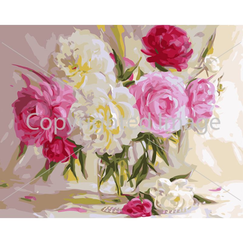 Картина за номерами Strateg ПРЕМІУМ Акварельний букет півонії з лаком розміром 40х50 см (GS1136)