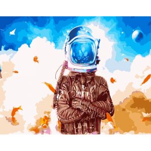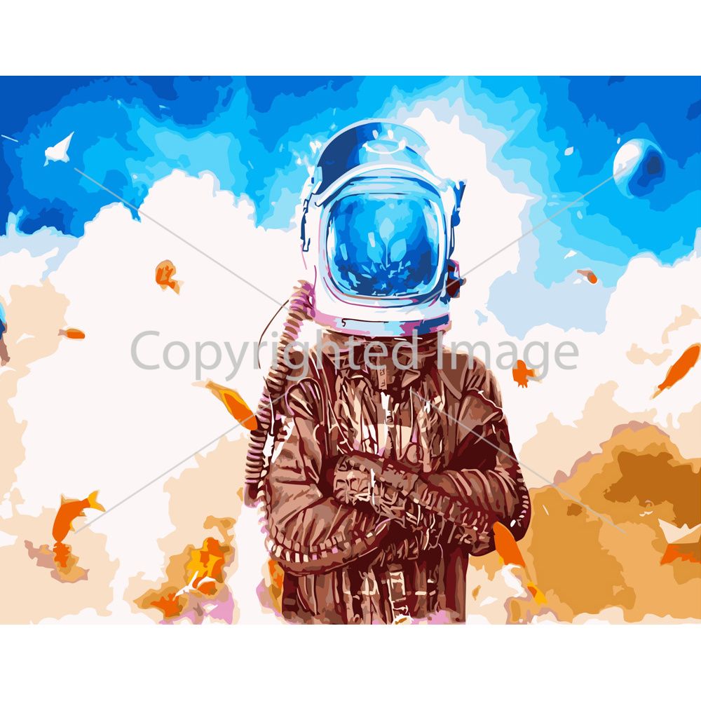 Картина за номерами Strateg ПРЕМІУМ Акварельний космонавт розміром 40х50 см (GS361)