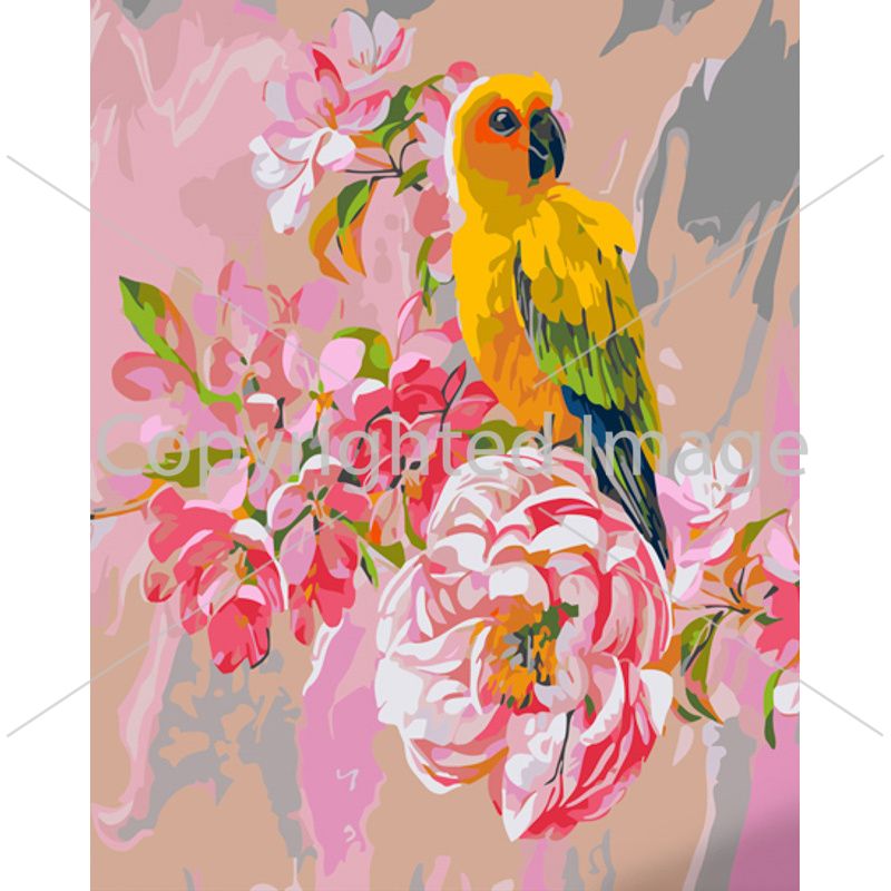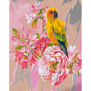 Картина за номерами Strateg ПРЕМІУМ Акварельний папужка з лаком розміром 40х50 см (GS1111)