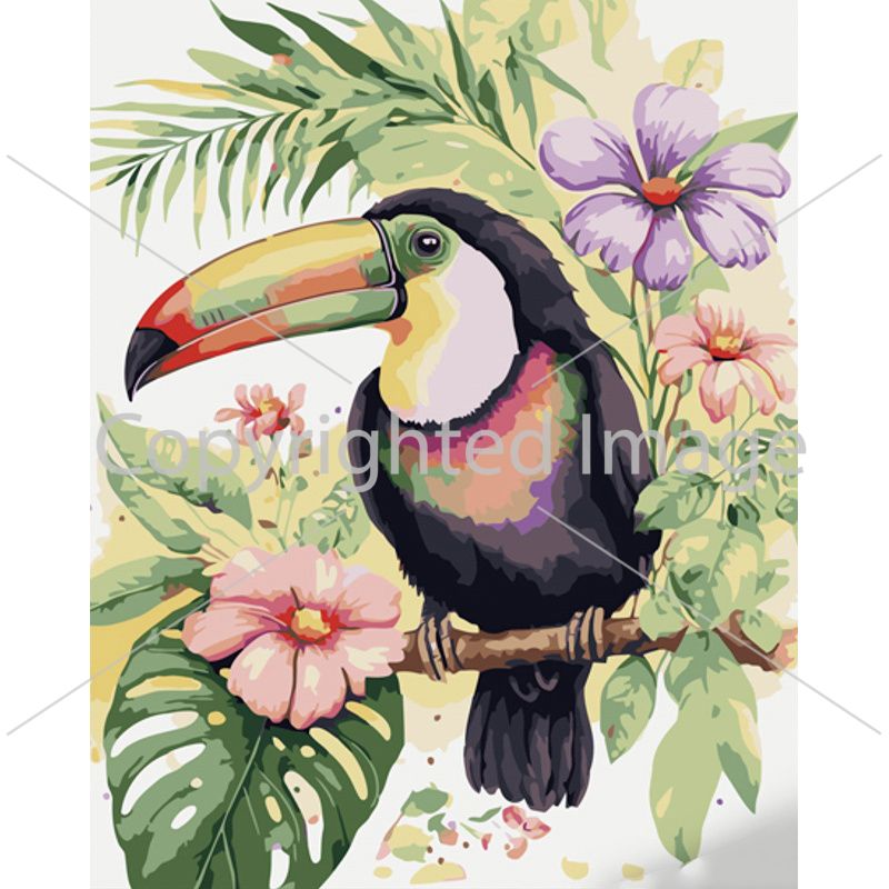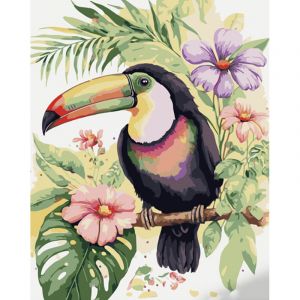 Картина за номерами Strateg ПРЕМІУМ Акварельний тукан з лаком та з рівнем розміром 40х50 см (GS1533)