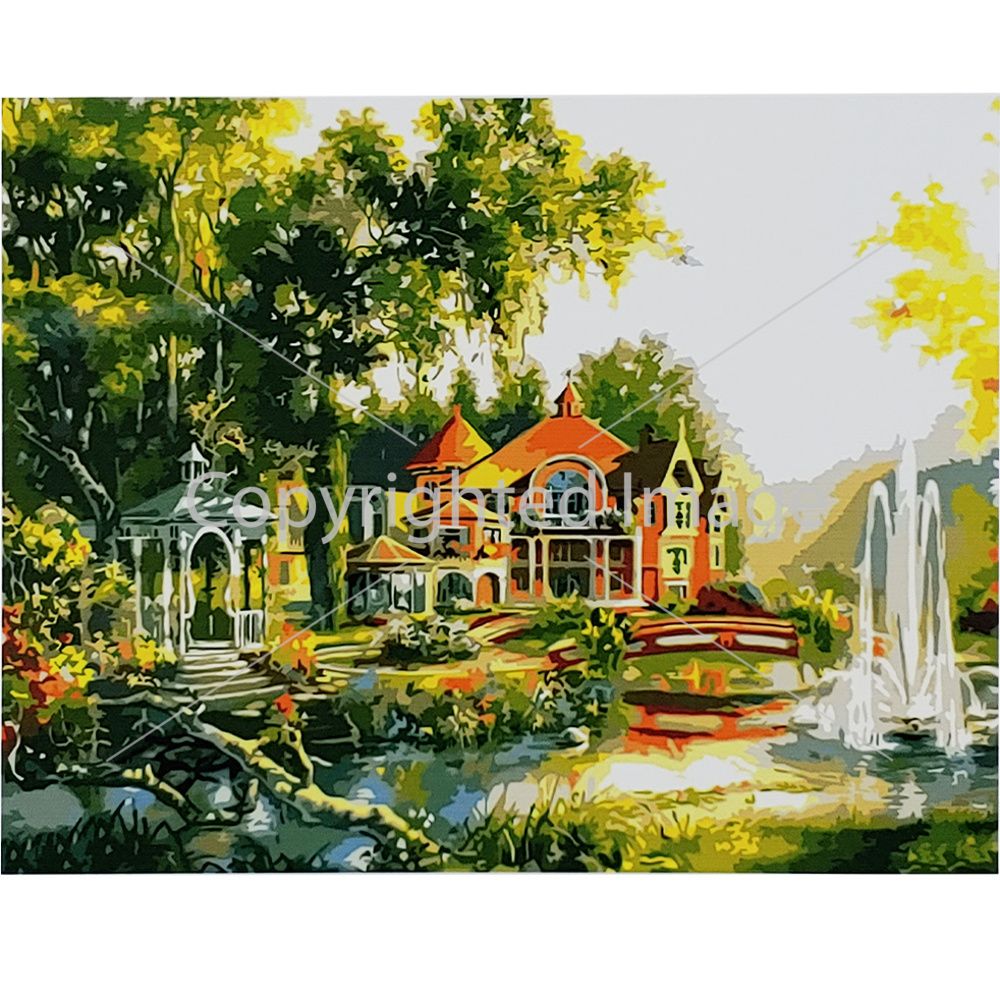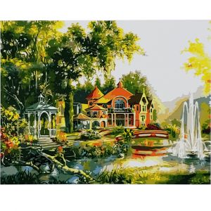 Картина за номерами Strateg ПРЕМІУМ Альтанка біля помістя розміром 40х50 см (GS040)