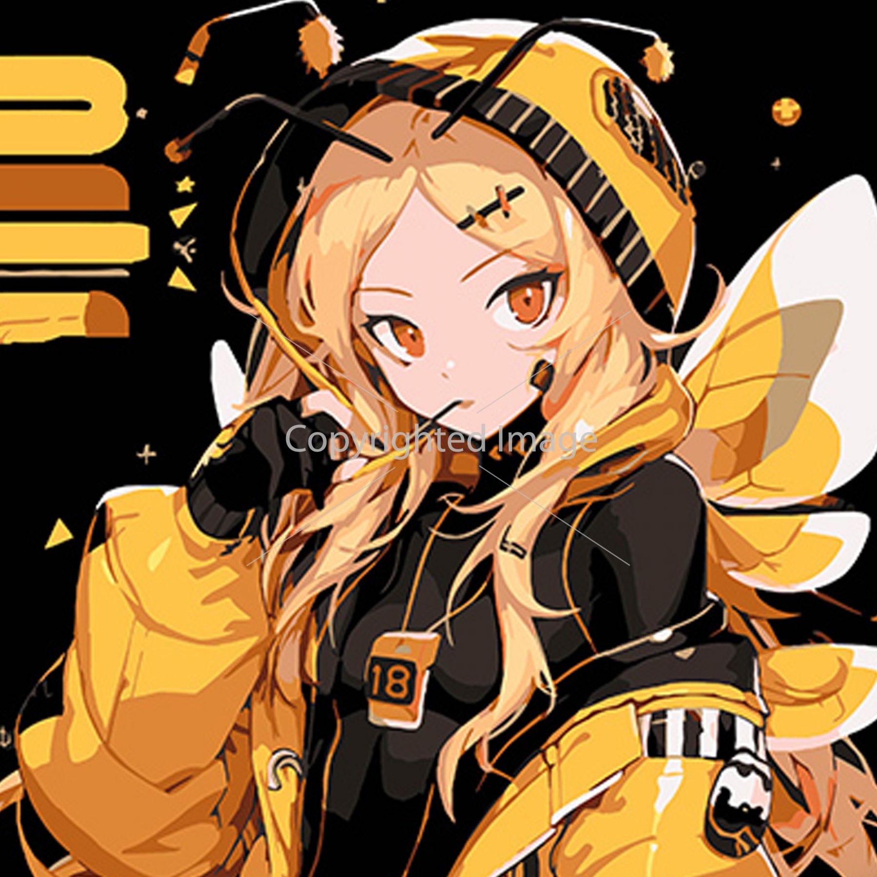 Картина за номерами Strateg ПРЕМІУМ Аніме-бджола на чорному фоні розміром 40х40 см (AV4040-67)