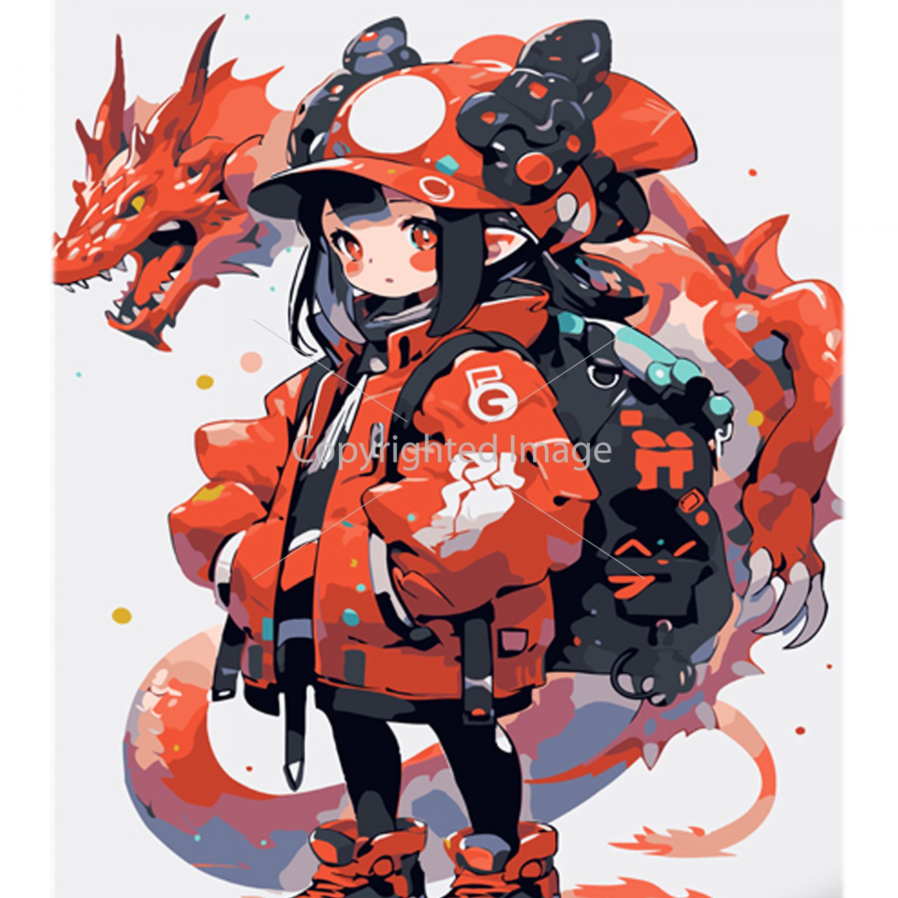 Картина за номерами Strateg ПРЕМІУМ Аніме з ілюстрацією дракона з лаком та з рівнем розміром 30х40 см (LY13)