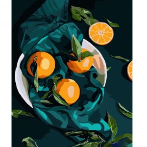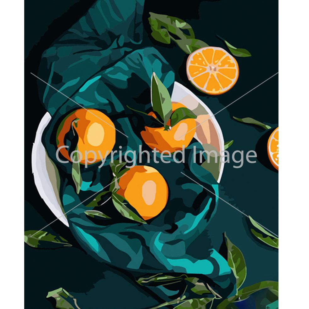 Картина за номерами Strateg ПРЕМІУМ Апельсиновий натюрморт розміром 40х50 см (GS546)