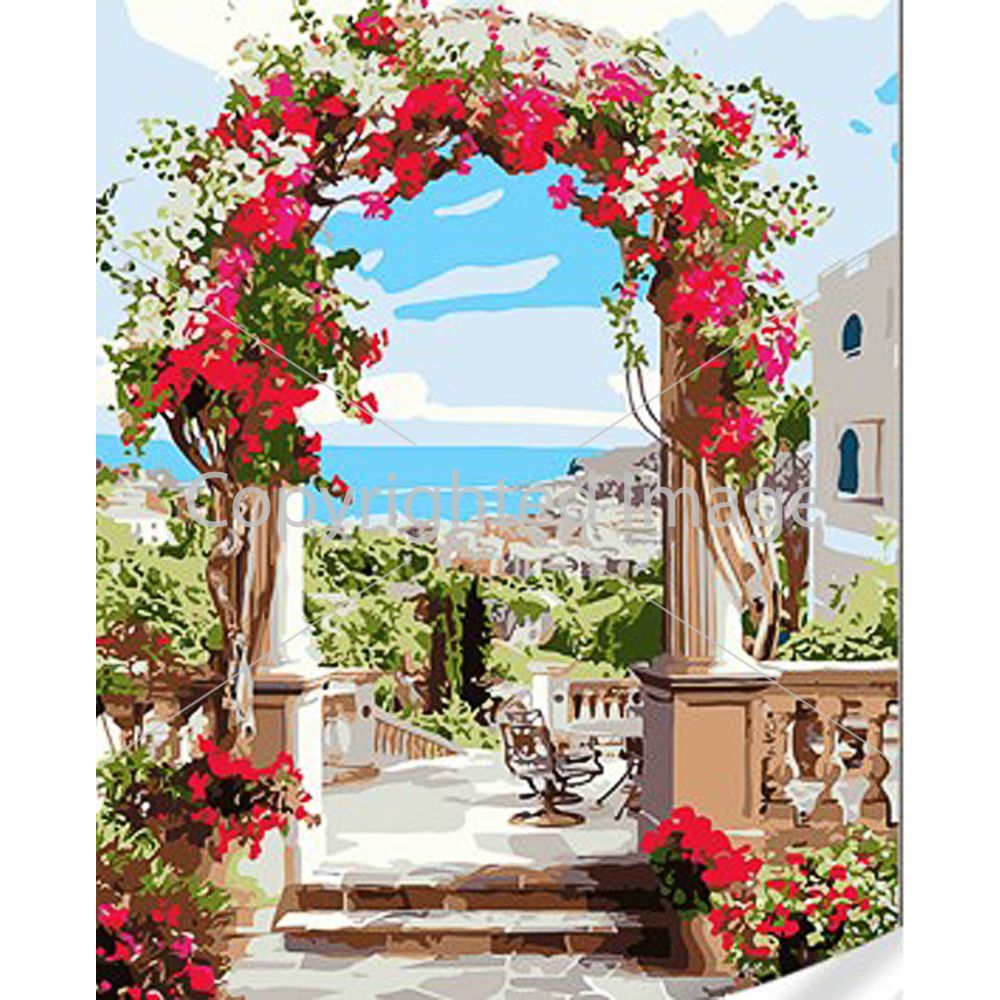 Картина за номерами Strateg ПРЕМІУМ Арка із квітів з лаком та з рівнем розміром 30х40 см (SS1100)