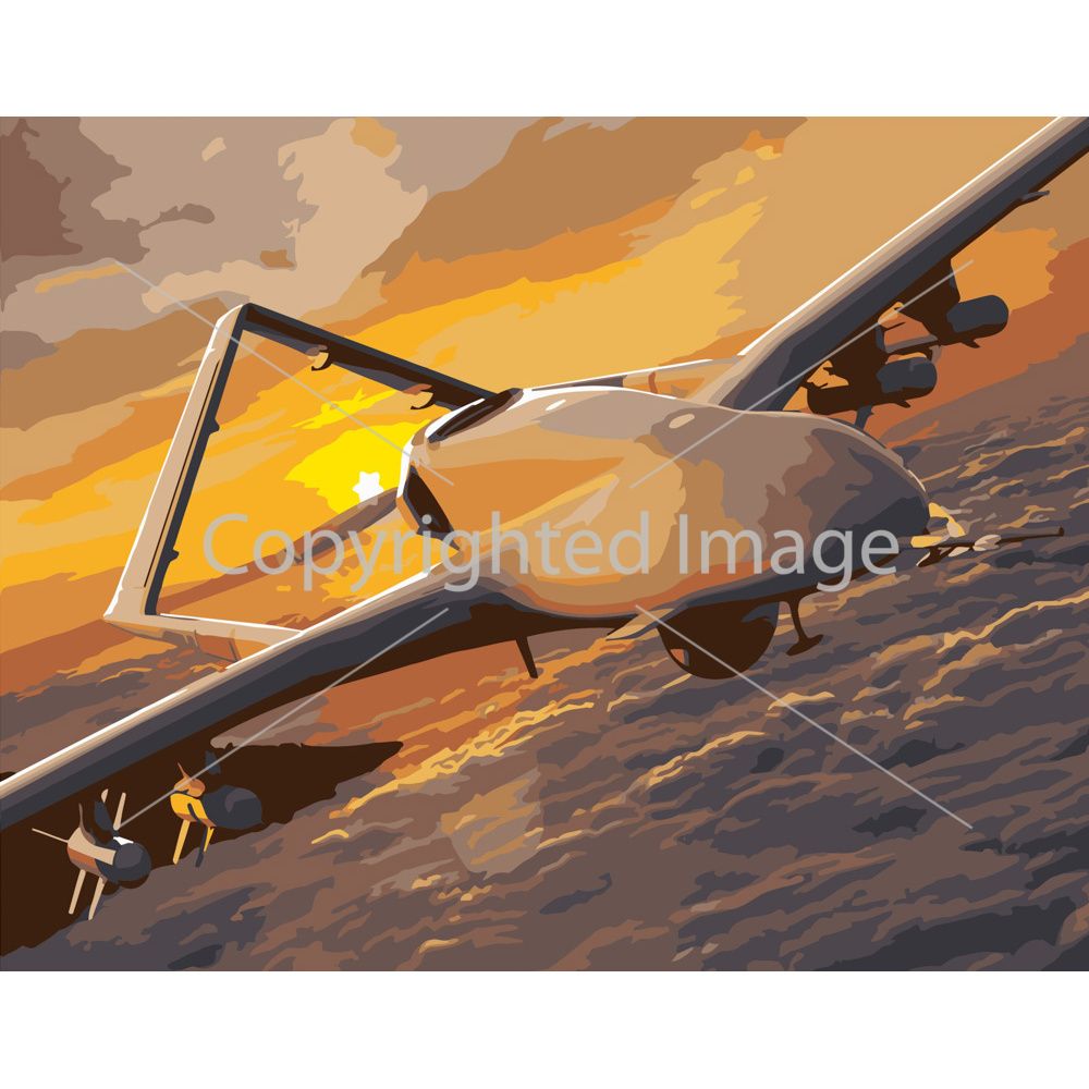 Картина за номерами Strateg ПРЕМІУМ Байрактар серед хмар розміром 40х50 см (DY260)