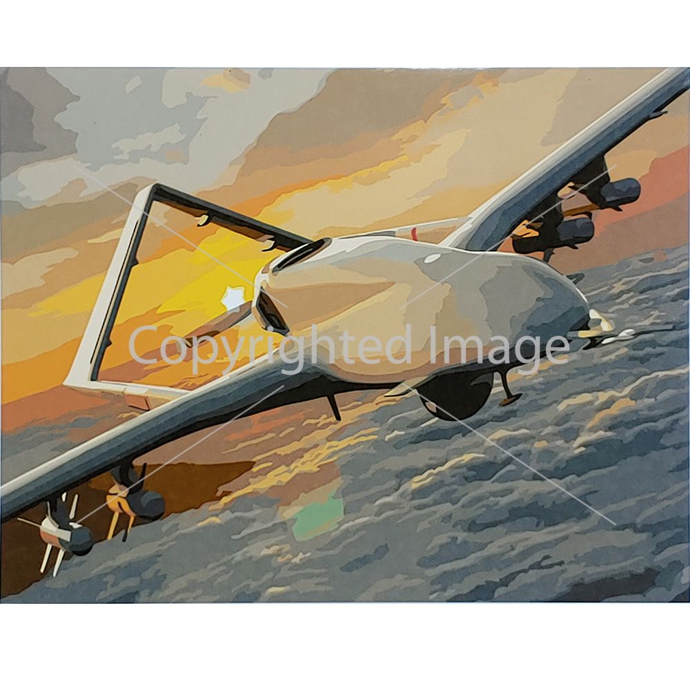 Картина за номерами Strateg ПРЕМІУМ Байрактар серед хмар з лаком розміром 40х50 см (SY6936)