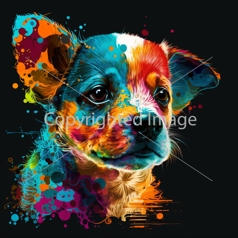 Картина за номерами Strateg ПРЕМІУМ Барвисте цуценя на чорному фоні розміром 40х40 см (AV4040-20)
