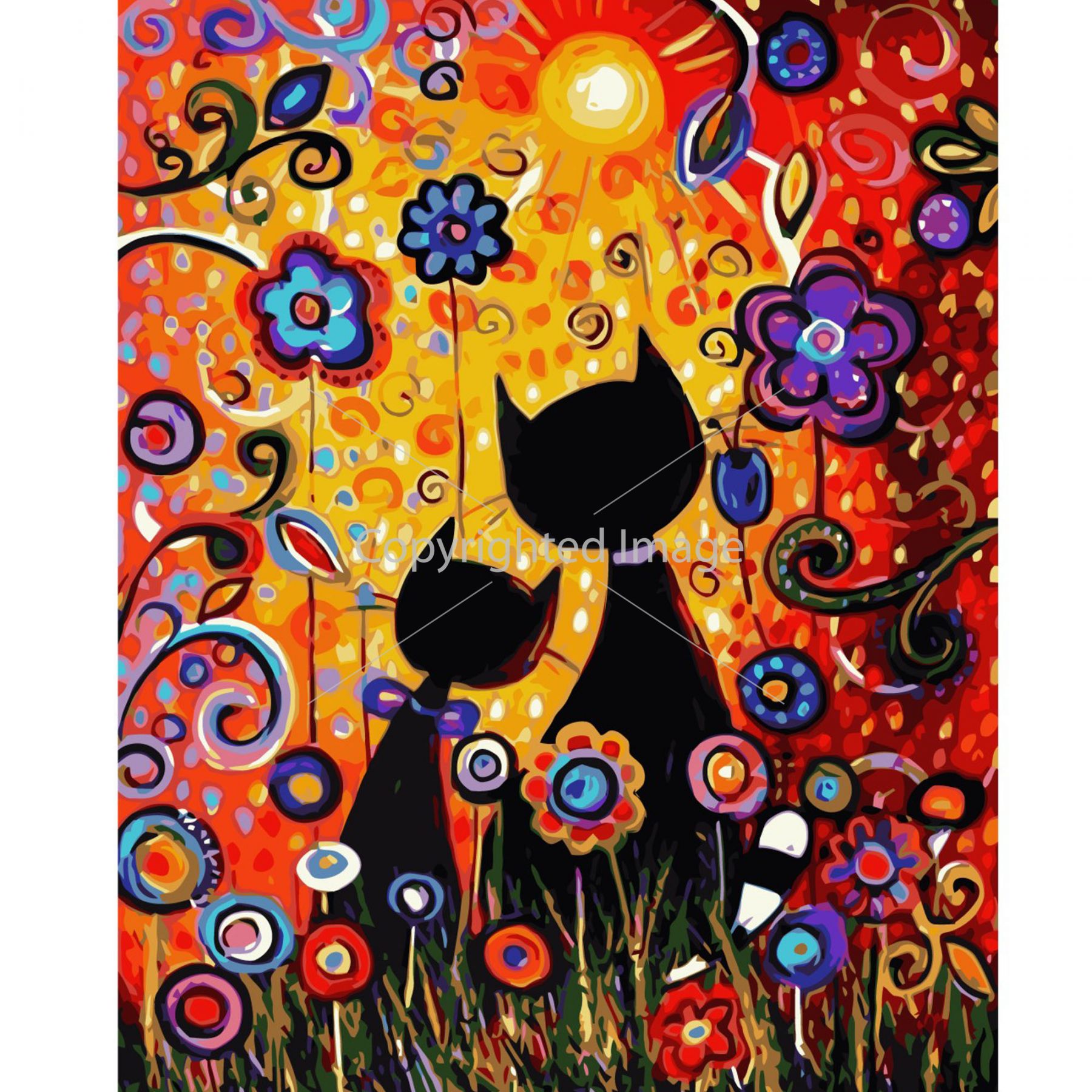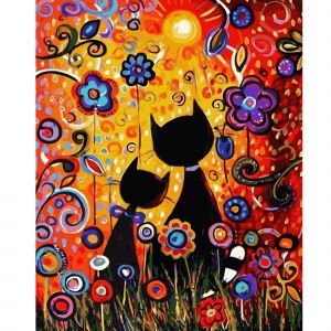 Картина за номерами Strateg ПРЕМІУМ Барвисті котики з лаком розміром 40х50 см VA-2293