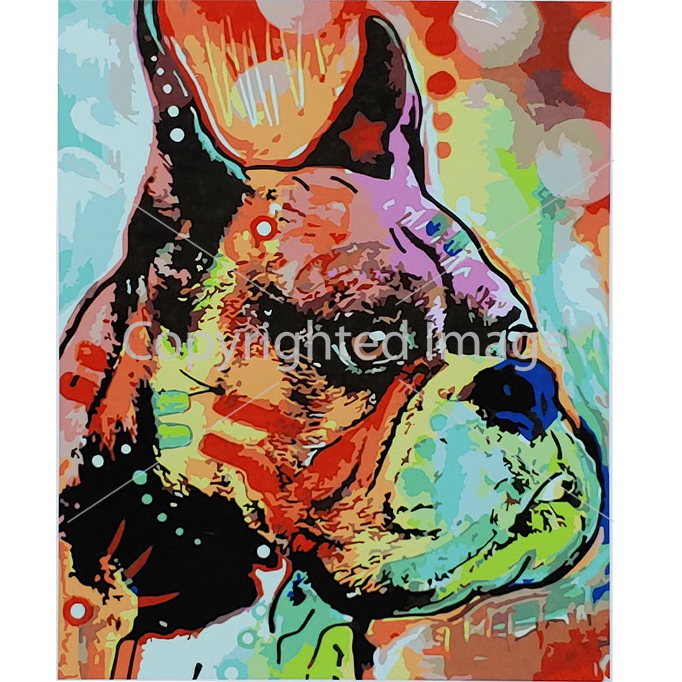 Картина за номерами Strateg ПРЕМІУМ Барвистий бульдог з лаком розміром 40х50 см (SY6875)