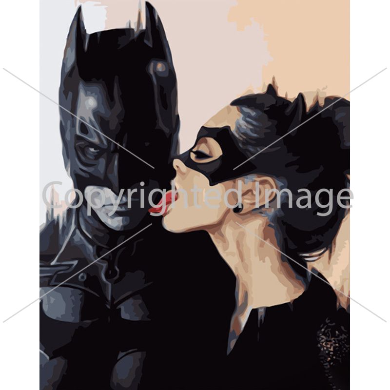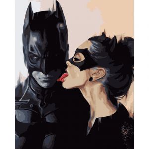 Картина за номерами Strateg ПРЕМІУМ Бетмен з жінкою-кішкою розміром 40х50 см (GS1142)