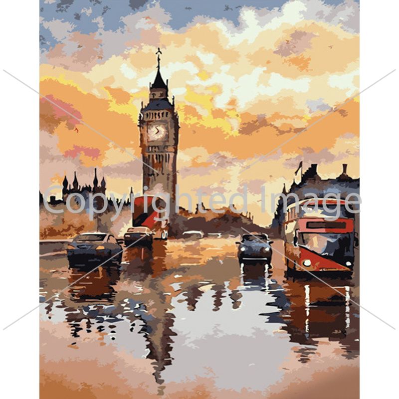Картина за номерами Strateg ПРЕМІУМ Біг Бен після дощу розміром 40х50 см (GS671)