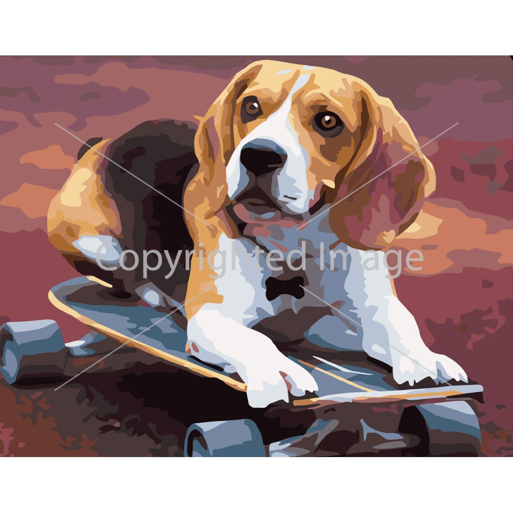 Картина за номерами Strateg ПРЕМІУМ Бігль на скейті розміром 40х50 см (GS519)