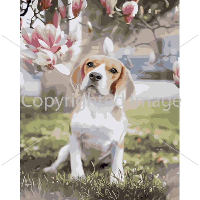 Картина за номерами Strateg ПРЕМІУМ Бігль під магнолією розміром 40х50 см (GS944)