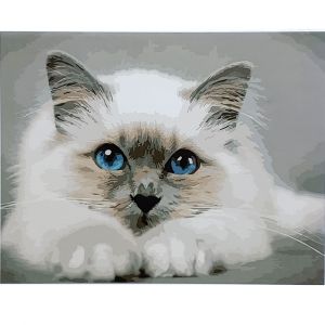 Картина за номерами Strateg ПРЕМІУМ Біленький котик з лаком розміром 40х50 см (SY6878)