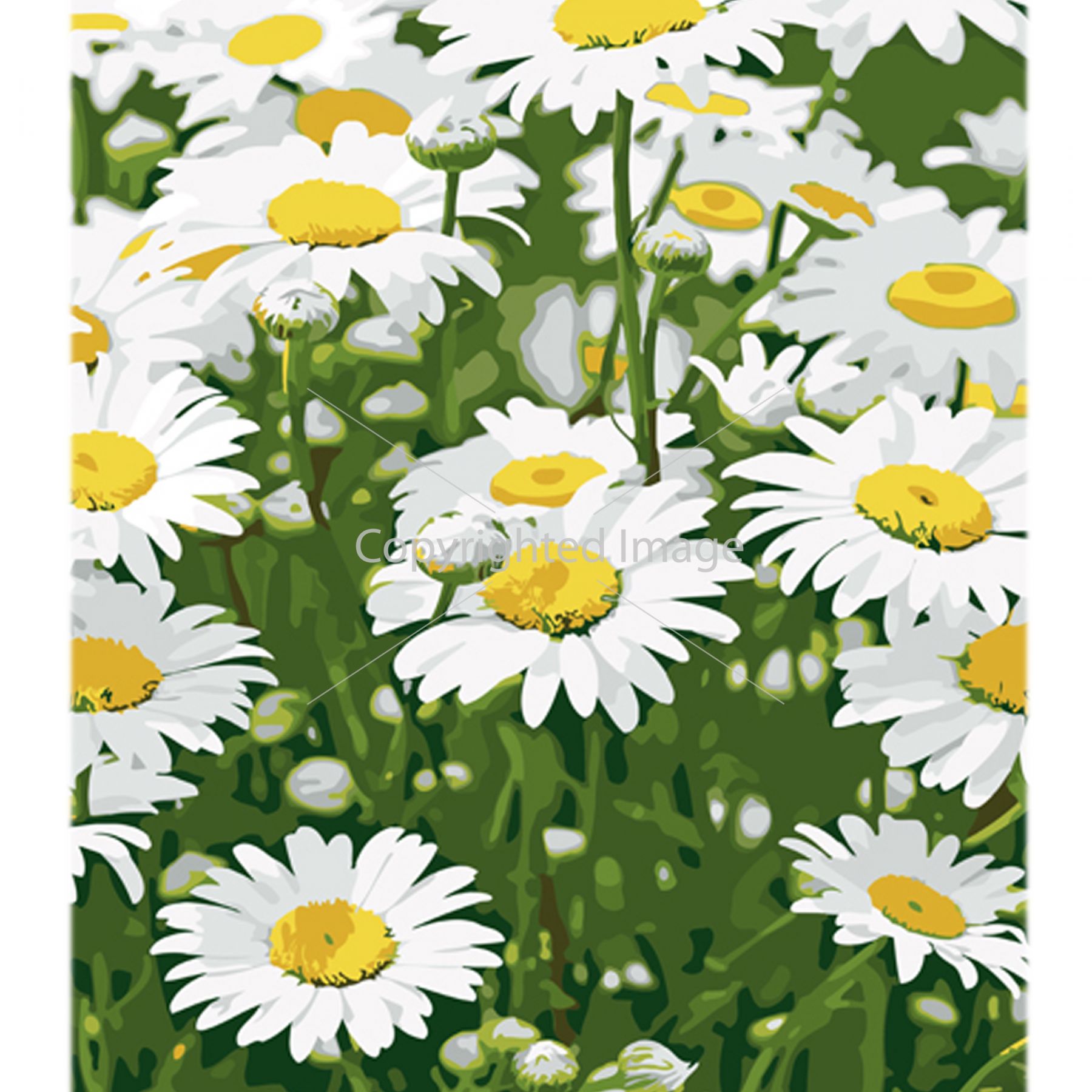 Картина за номерами Strateg ПРЕМІУМ Білі ромашки з лаком та з рівнем розміром 30х40 см (LY38)