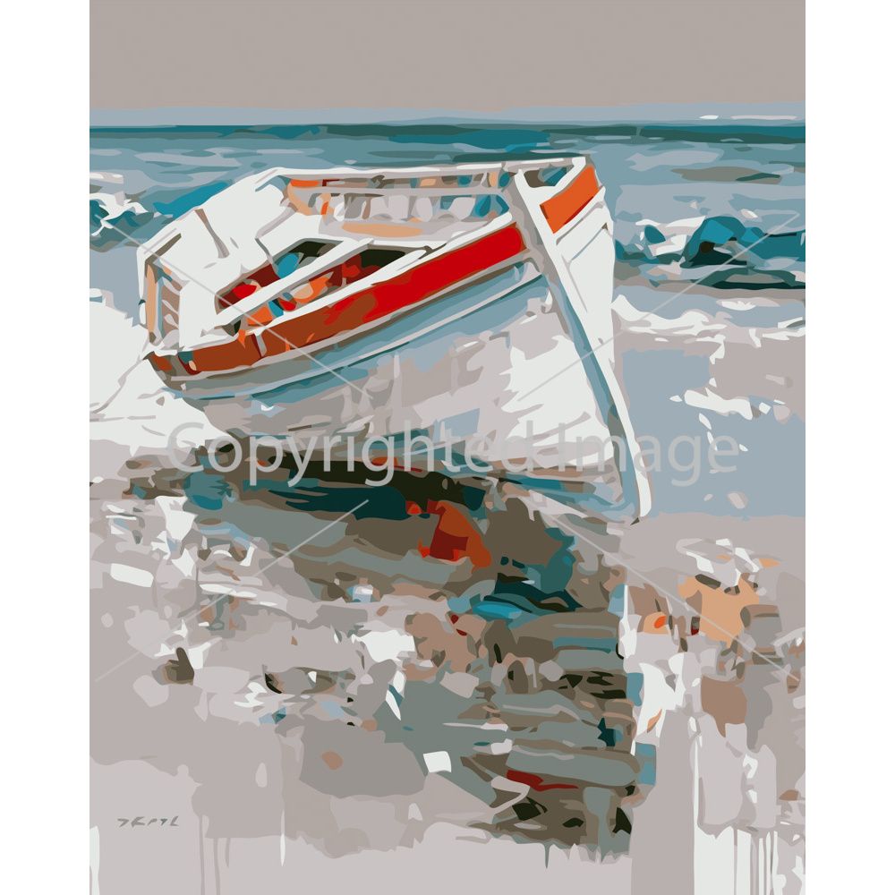 Картина за номерами Strateg ПРЕМІУМ Білий човен розміром 40х50 см (GS075)