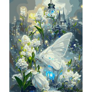 Картина за номерами Strateg ПРЕМІУМ Білий метелик розміром 40х50 см (GS913)