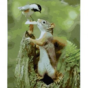 Картина за номерами Strateg ПРЕМІУМ Білочка з пташкою з лаком розміром 40х50 см (SY6930)