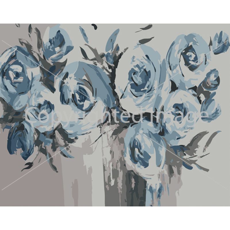 Картина за номерами Strateg ПРЕМІУМ Блакитні квіти розміром 40х50 см (GS1043)