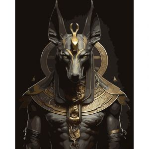 Картина за номерами Strateg ПРЕМІУМ Бог Анубіс з лаком та з рівнем розміром 40х50 см (GS1419)