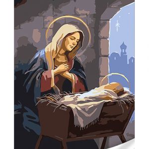 Картина за номерами Strateg ПРЕМІУМ Богородиця над дитям з лаком та з рівнем розміром 30х40 см (SS1142)