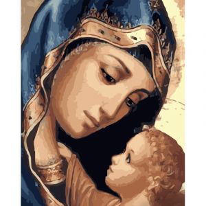 Картина за номерами Strateg ПРЕМІУМ Божа матір з лаком розміром 40х50 см (GS1228)