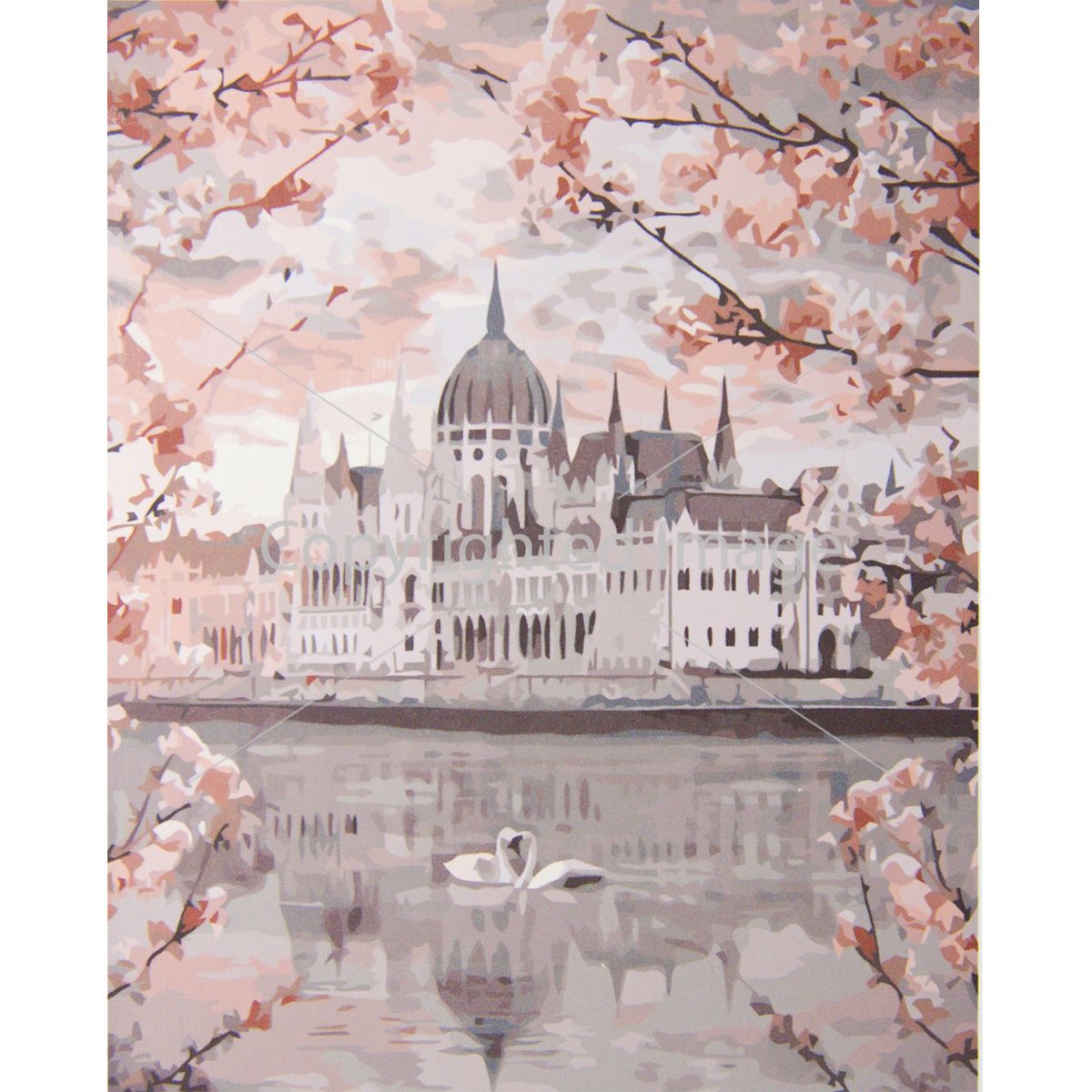 Картина за номерами Strateg ПРЕМІУМ Будапешт у квітах з лаком розміром 40х50 см VA-3376