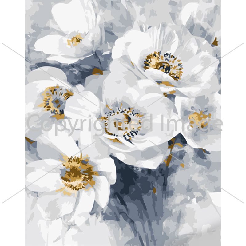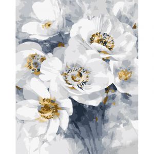 Картина за номерами Strateg ПРЕМІУМ Букет білих квітів з лаком розміром 40х50 см (GS1085)