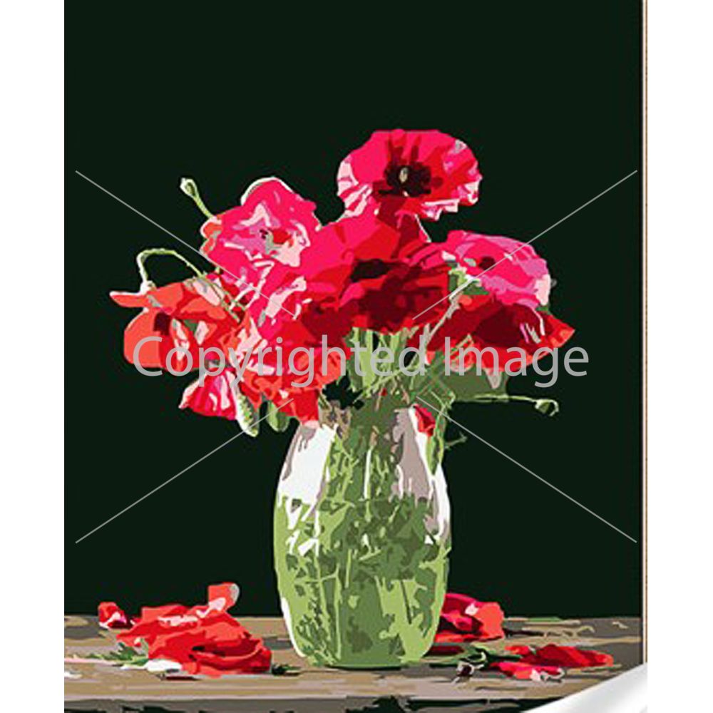 Картина за номерами Strateg ПРЕМІУМ Букет квітів маку у вазі з лаком та з рівнем розміром 30х40 см (SS1044)