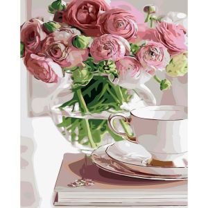 Картина за номерами Strateg ПРЕМІУМ Букет рожевих піонів з лаком розміром 40х50 см SY6160