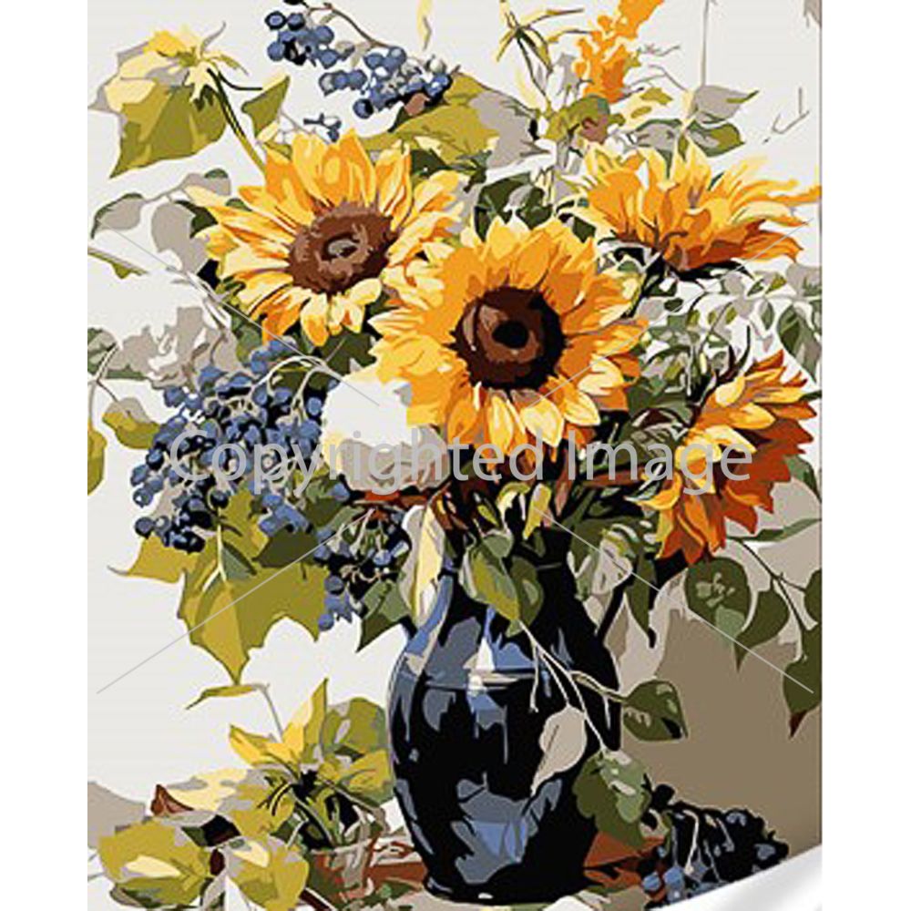 Картина за номерами Strateg ПРЕМІУМ Букет соняшників. Натюрморт з лаком та з рівнем розміром 30х40 см (SS1065)