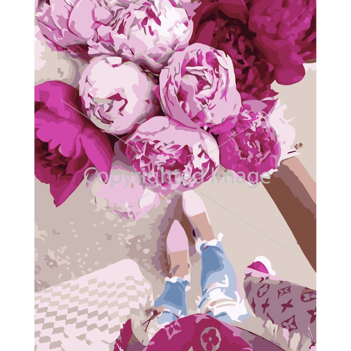 Картина за номерами Strateg ПРЕМІУМ Букет в руках з лаком розміром 30х40 см (SS-6609)