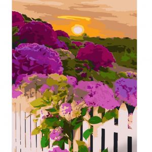 Картина за номерами Strateg ПРЕМІУМ Бузок на заході сонця розміром 40х50 см (GS576)