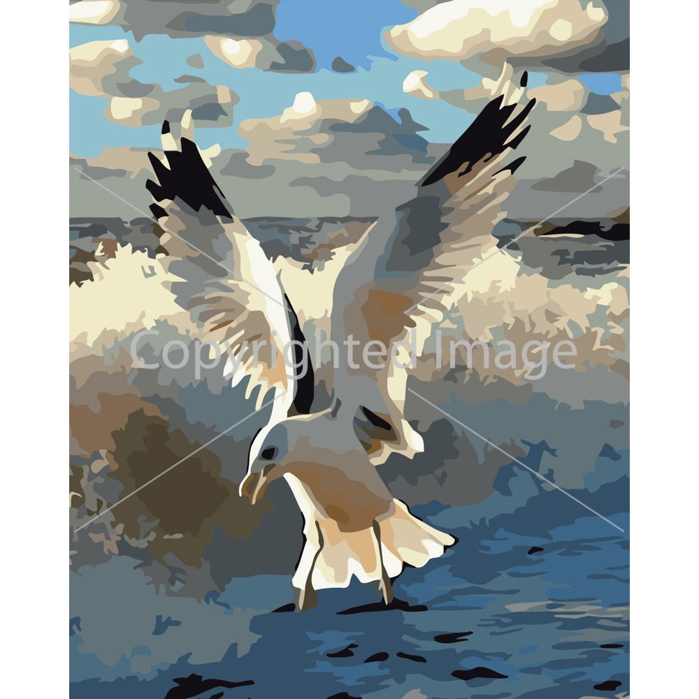 Картина за номерами Strateg ПРЕМІУМ Чайка на морі розміром 40х50 см (GS535)