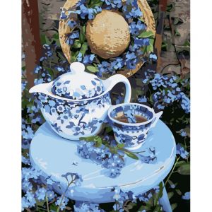 Картина за номерами Strateg ПРЕМІУМ Чаювання з лаком розміром 40х50 см (GS1246)